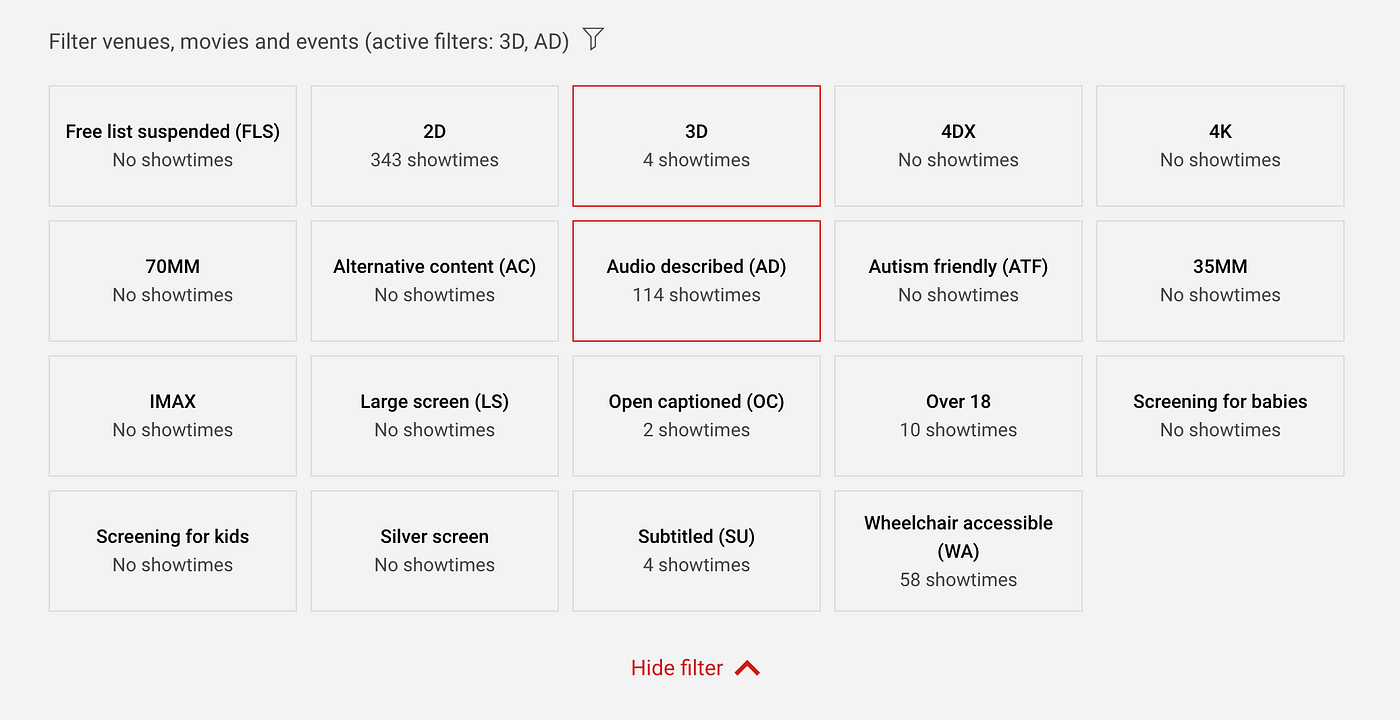 GO2CINEMA uses a unique design that allows discovery of the showtimes for all movies, across many venues with little to no interaction – just scroll.