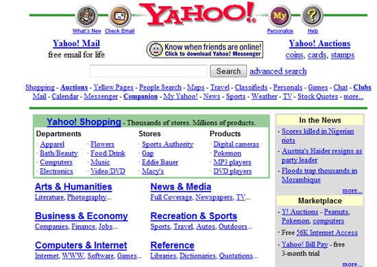 Not surprisingly, my first email provider was Yahoo!. I will just say that the address was "[cringeworthy]"@yahoo.com.