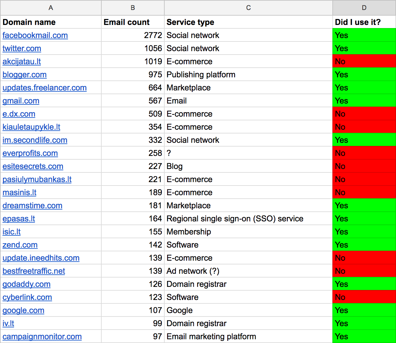 By far the most emails came from the social networks and e-commerce platforms.