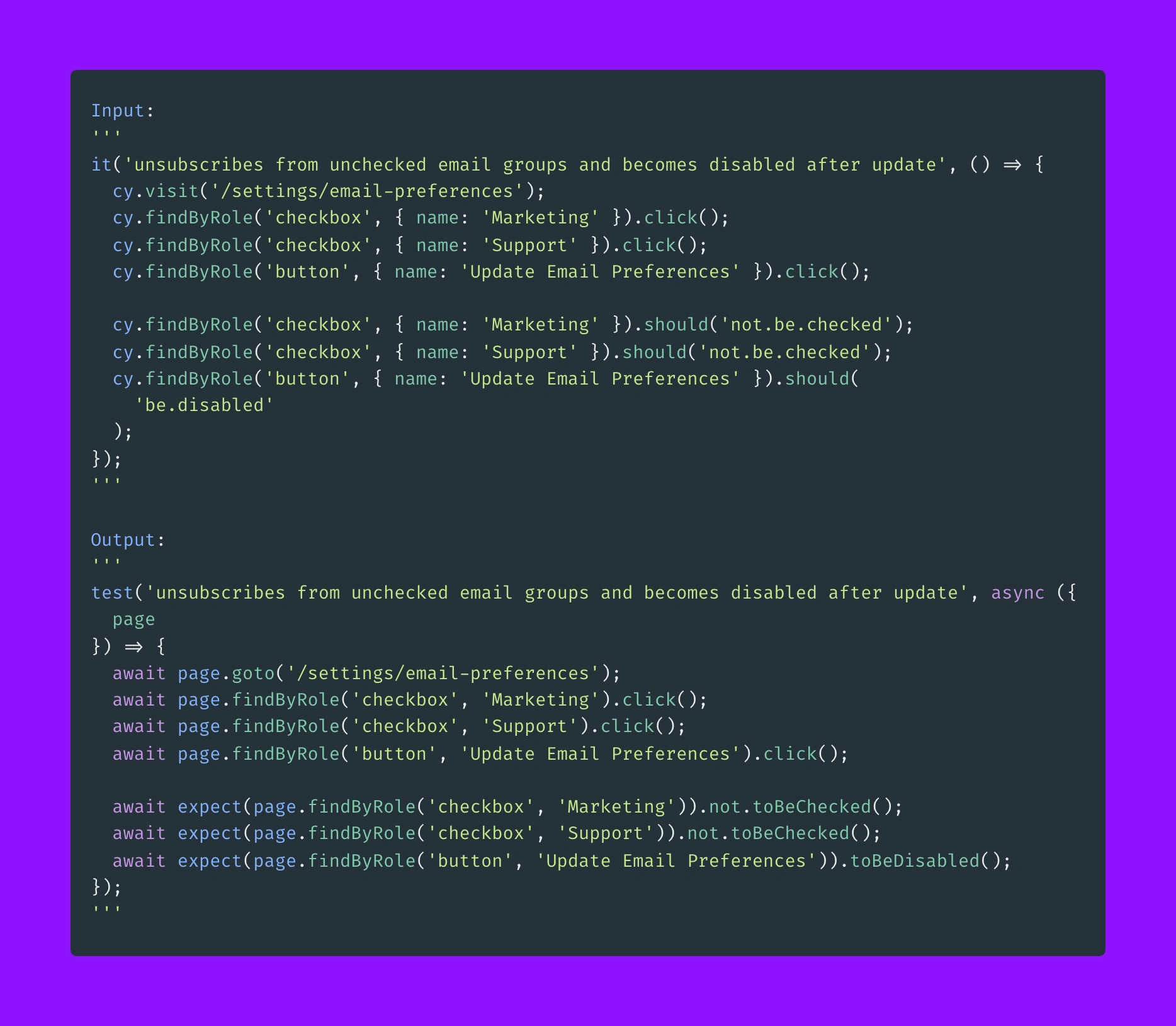 Rewriting tests from Cypress to Playwright using GPT3