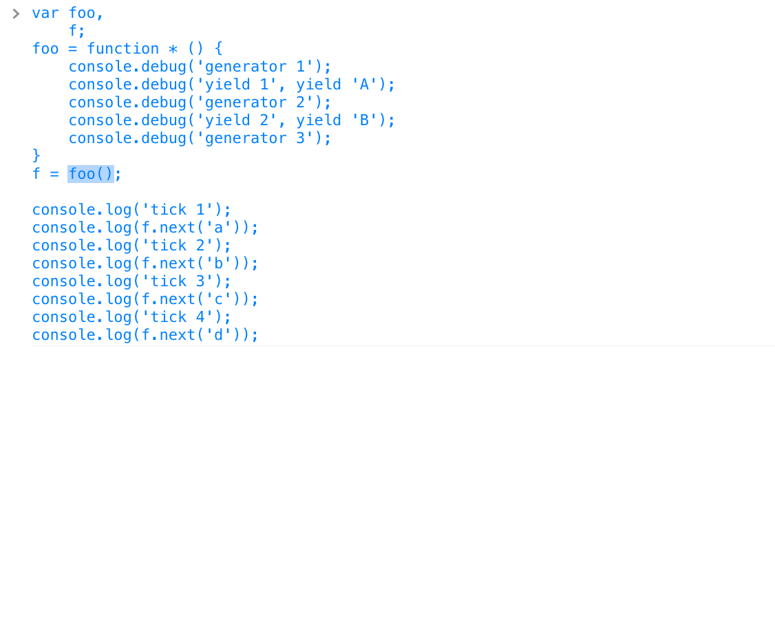 // Object {value: undefined, done: true}When suspended, the generator does not block the event queue: