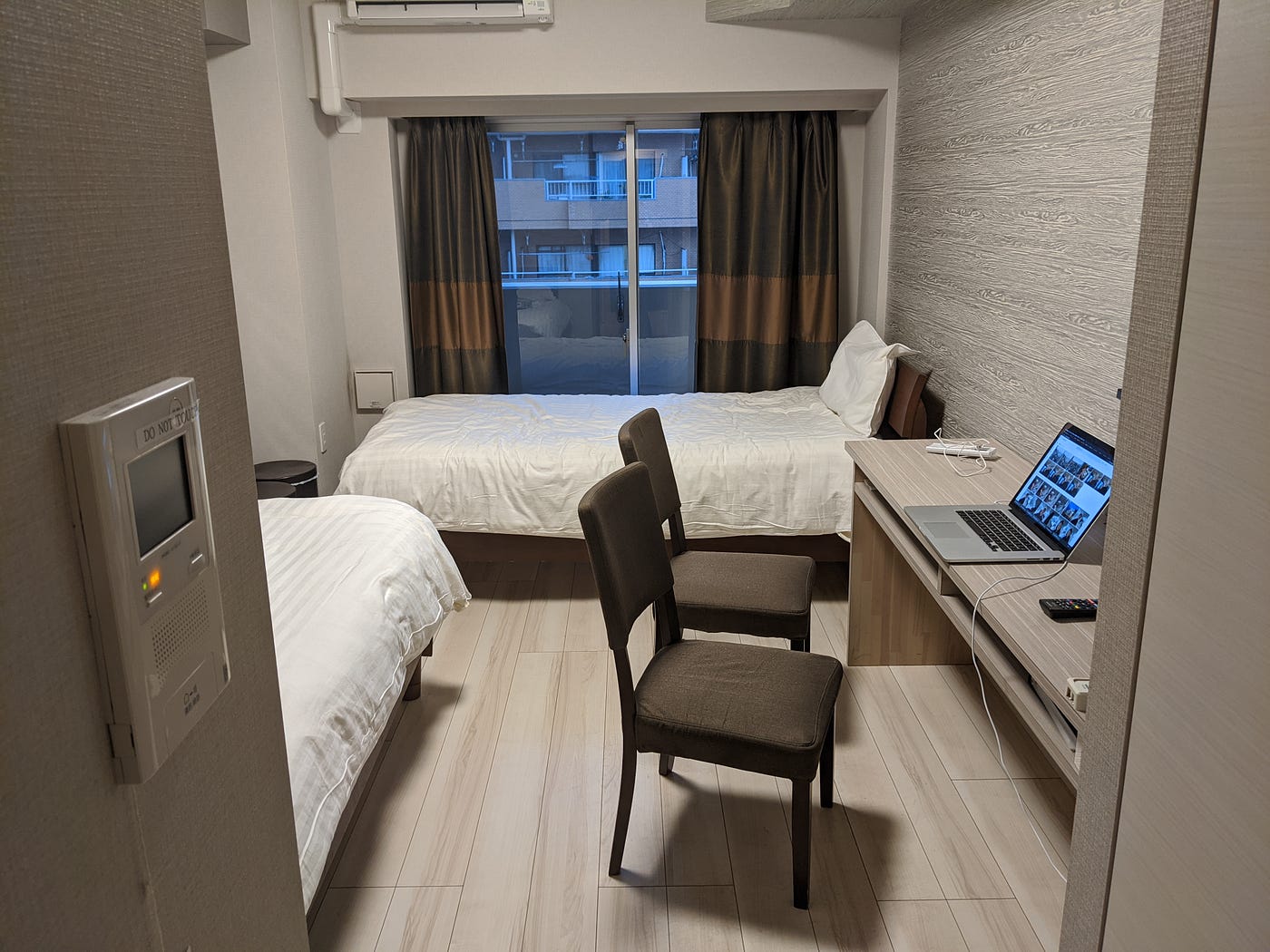 In terms of working while traveling around Japan, all hotels have spacious receptions with fast Internet. A lot of the times there are foreigners sitting in these guest rooms with their MacBooks and familiar IDEs on their screens. The only downside is resisting the constant urge of wanting to go and explore the city. However, hotels are pricey. If you are traveling on a budget, scout for AirBnb's and you might get lucky, e.g. I needed a quite place with no bells and whistles (a remote place to work from undisturbed) and I found an AirBnb near Tokyo for just USD 19 night.